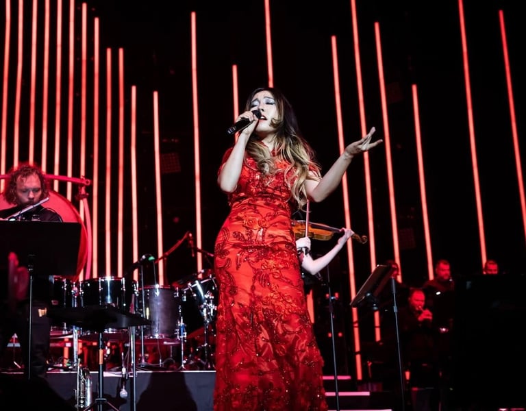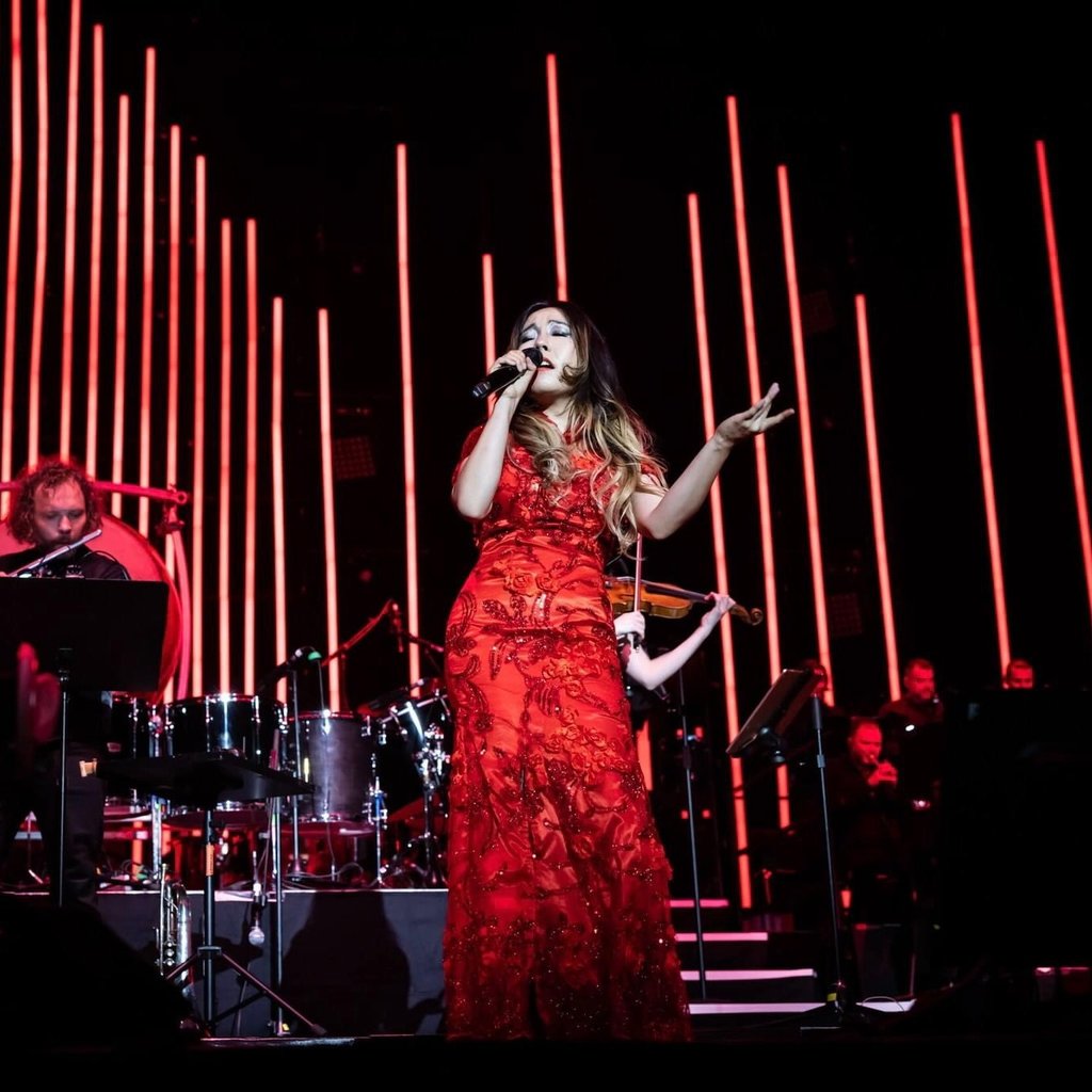 She sings as a concert soloist with orchestras and ensembles internationally. Her performances include major arena tours as a concert vocal soloist with orchestra and choir performing in dozens of major European cities including Paris, Berlin, Brussels, London, Amsterdam, Krakow with the masters of epic music Two Steps From Hell Live shows (5 Billion Streams), produced by Semmel Concerts and Tomek Productions, producers of World of Hans Zimmer Live world tours. The second tour was kicked off with a performance at the most important heavy metal festival in the world and the biggest open air festival in Germany, Wacken Open Air 2023 with an attendance of 110 000 people. She also performed as a vocal soloist with full orchestra and choir in special televised performances of cinematic music including Hans Zimmer's "Batman: The Dark Knight" Suite with the Masterpiece Experience in Spain and Romania, the latter performance went viral, garnering over 26 Million views. The Romanian edition of Forbes Magazine wrote "her voice harkens back to ancient civilizations". Recently, The Mongolian National Broadcaster featured her in a special segment highlighting her career, which went viral across the country.
